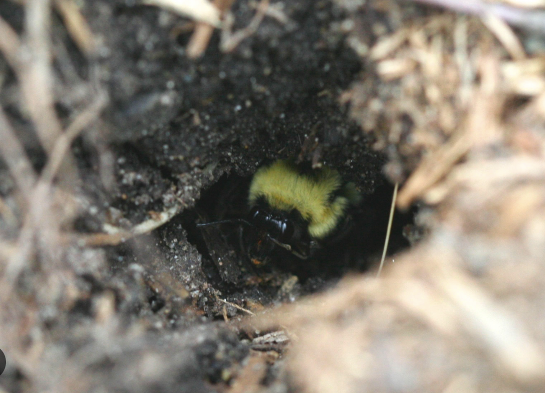 Bumble bee queen burrowing underground in the fall